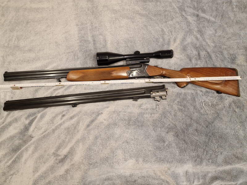 Das Kugel/Schrotlaufbündel hat eine Länge von 63 cm, Gesamtlänge 105 cm. Das Schrotlaufbündel hat eine Länge von 70 cm, Gesamtlänge 113 cm. Montiert ist eine Zeis Jena Optik 8 x 56.