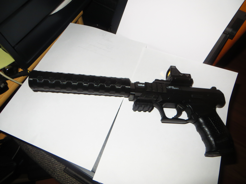 Ich biete eine UMAREX CPSport an (Baugleich Walther CP88). Es ist ein Schalldämpfer (Atrappe) montiert und ein REDDOT. Am REDDOT IST