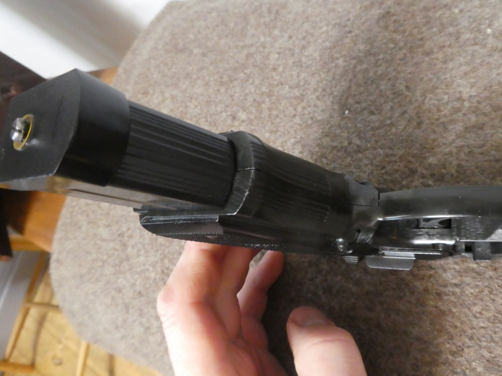 Mit ab klappbaren Vordergriff und vergrößertem Magazin, wie das Vorbild.