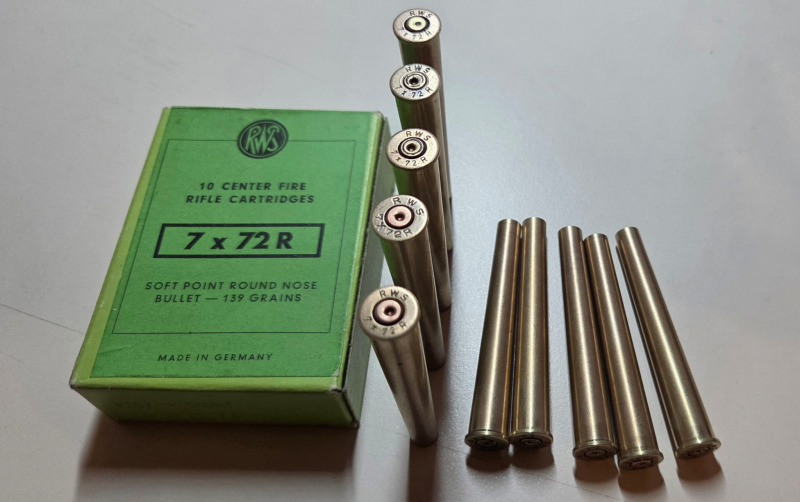 10 leere RWS-Hülsen des seltenen historischen Kalibers 7x72R.