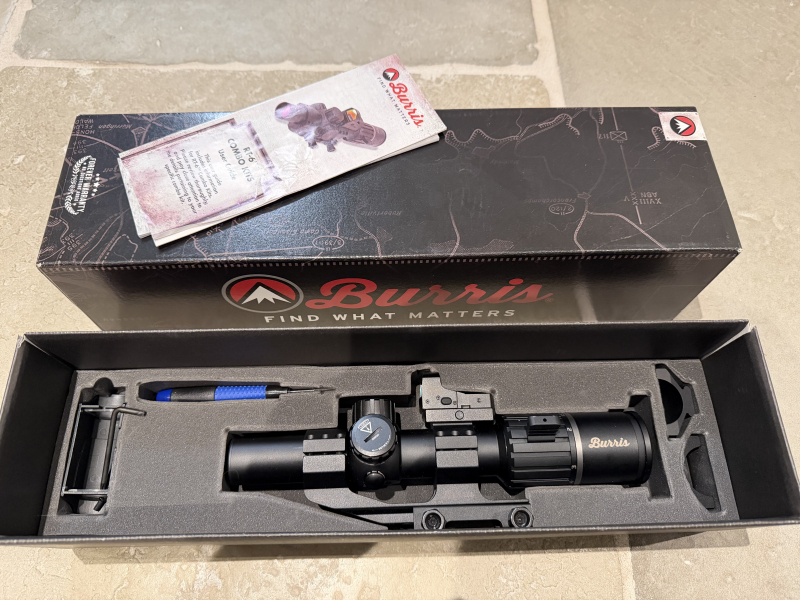 Verkaufe fast neues Burris RT6 1-6x24 mit FastFire 3 opt. Visier. Super Drückjagdkombination. Montage auf Picatinny Schiene.