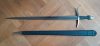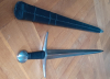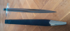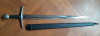 Neuwertig, außer ein paar Bögen Kopierpapier habe ich nichts damit geschnitten. Die Klinge ist steif und dennoch flexibel, das Schwert mit ca. 1050 g Gewicht und einem Balancepunkt von ca. 12,5 cm vom Parier äußerst führig, ein hervorragendes Kampfschwert und definitiv Schnittest-geeignet. Scharf, inkl. mit Leder bezogener Scheide mit Holzkern. Originalverpackung. Habe es vor zwei Monaten hier erworben: