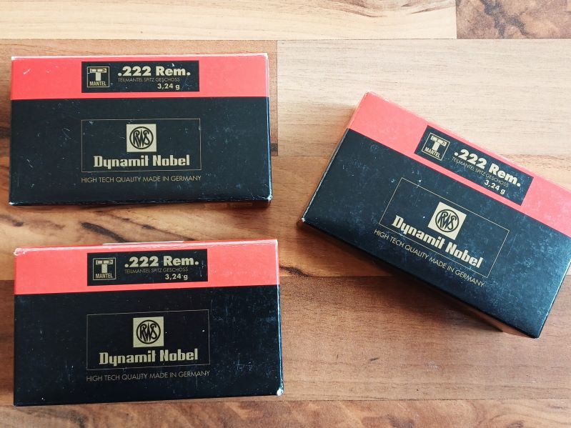 Verkaufe insgesamt 60 Schuss .222 Rem. Munition von RWS, Typ Teilmantel spitz (3,24g / 50grs).