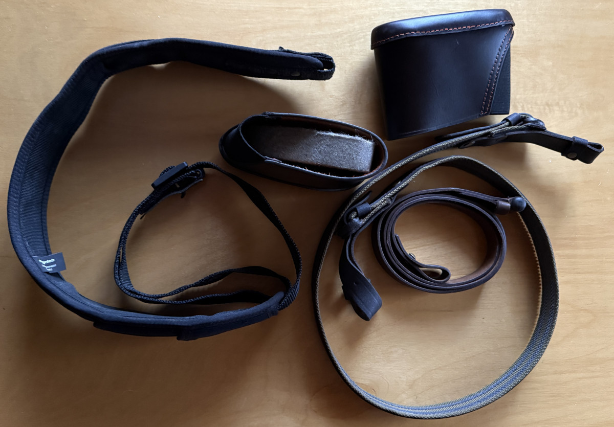 Konvolut: drei Gewehrriemen, zwei aufsteckbare Schaftverlängerungen