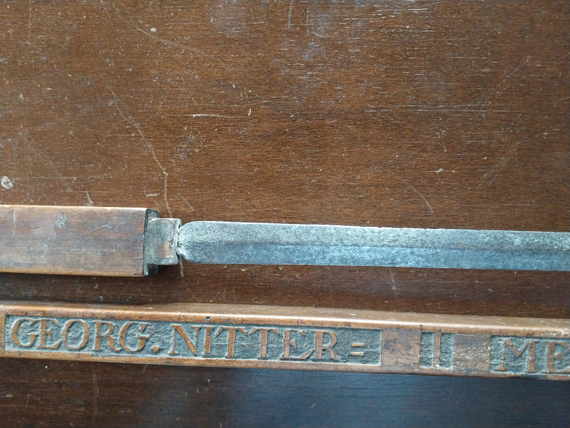 Hallo , biete hier einen historischen "Stock" an , er besitzt eine eingelassene Klinge die sehr alt aussieht und mit einer Schmiedemarke gekennzeichnet ist. Sie sieht aus wie ein großes X. Der Korpus ist verziert und mit einer Innschrift versehen siehe Fotos. Bei Bedarf kann ich auch noch Fotos schicken. Es stammt wohl aus dem Jahre 1859 hat eine Länge von 96cm. Die Klinge mit Schaft beträgt 80cm , Klinge Solo 64cm.