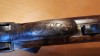 zu schade. Das Gewehr hat ein paar Lagerspuren mit der Zeit bekommen, was nach 26 Jahren verständlich ist. Auf der Kolbenoberseite ist eine hellere Stelle, siehe Bilder. Ich weiss nicht was das ist oder gewesen war. Ich habe sie so erworben und bei Frankonia damals deswegen einen Preisnachlass von ca. 50,00 DM bekommen. Die Sharps ist reich graviert, siehe Bilder. Jede einzelne Schraube hat Gravur. Ich habe versucht es auf einem Foto zu zeigen, was aber nicht so recht gelungen ist. Der Lauf ist bräuniert, nicht brüniert, bei diesem Model hat IAB gezeigt das sie Gewehre bauen können.