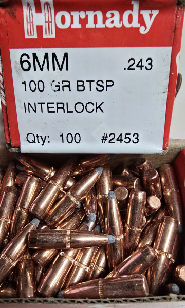 100St. Hornady .243 - 100gr. BTSP Interlock Geschosse