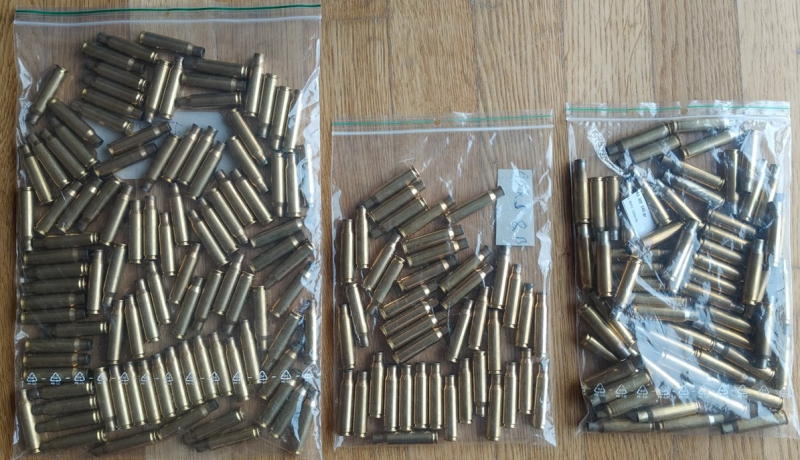 Angeboten werden 204 Hülsen im Kaliber .308 Win. - einmal abgefeuerte Fabrikmunition, Hülsen sind nicht gereinigt.