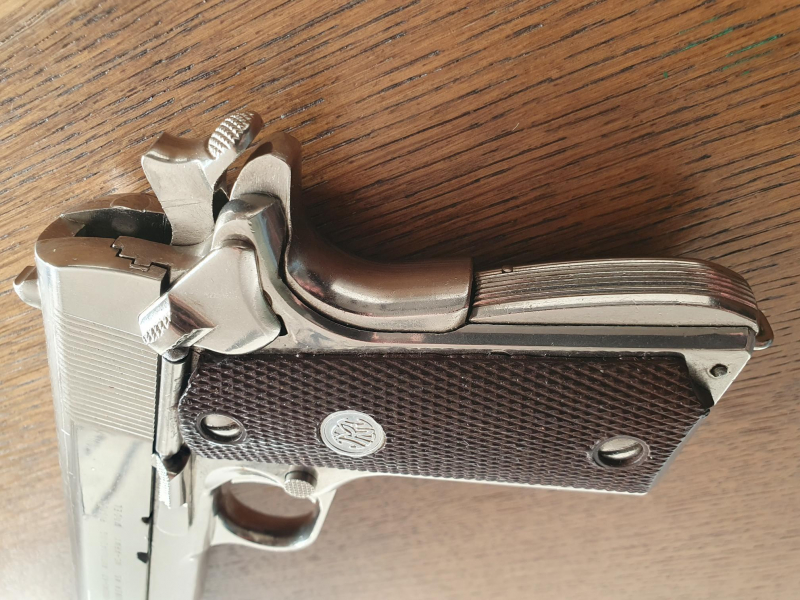Hier gibt es nun einen COLT 1911 Government von MGC/RMI, in der absolut seltenen Nickel-Ausführung! Ich habe den in all den Jahren bei Egun exakt einmal gesehen, und es war dieser hier! Seitdem ist diese Ausführung nie wieder angeboten worden! Es ist übrigens der im obigen link beschriebene!