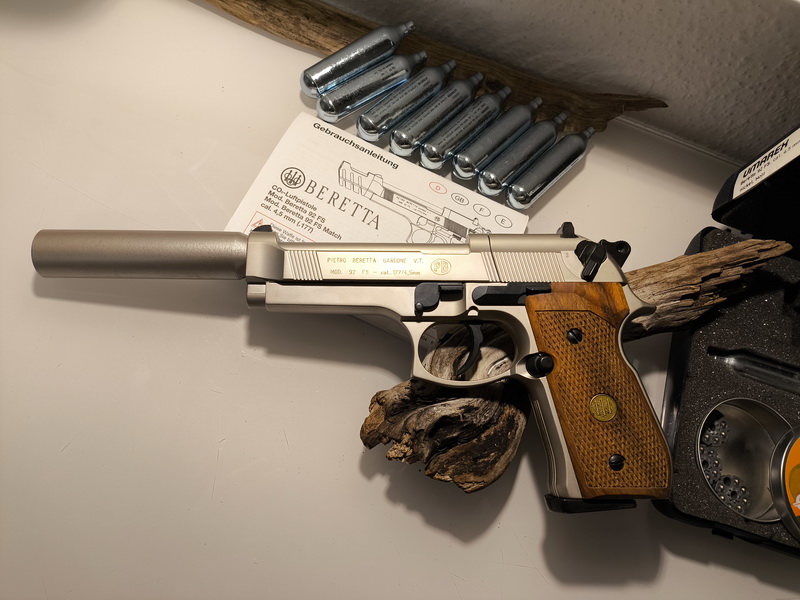 Beretta FS92 CO2 mit Schalldämpfer aus der Tuningschmiede Holden .