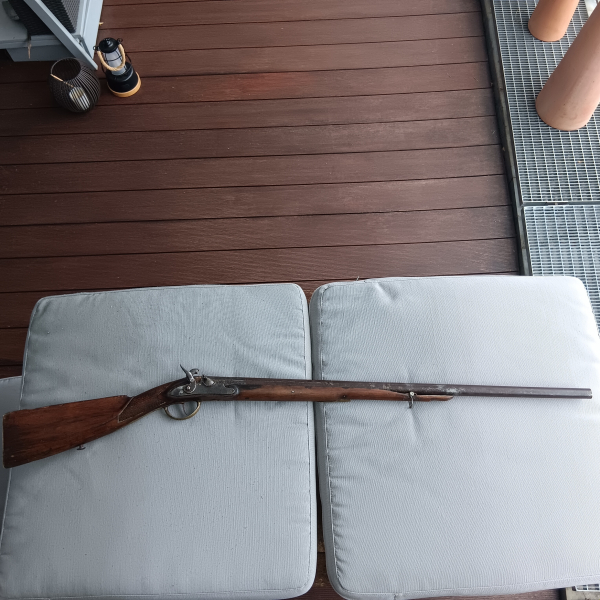 Hallo, Egunner, ich biete hier eine alte Flinte, war sicher mal eine sehr schöne Jagdflinte, zum Ersteigern. Sie ist 112cm lang, wiegt ca. 2,6kg, der Lauf hat Kaliber ca. 17mm. Zum Alter kann ich keine Angaben machen. Der Lauf hat relativ gute Substanz, das originale Pistongewinde, aber ein neues Piston. Das Schloss funktioniert, der Hahn rastet zweimal ein, das Abschlagen von Zündhütchen geht gut. Die noch ziemlich starke Hauptfeder rutscht jedoch durch, wenn der Lauf demontiert ist und der Hahn bis ganz nach vorne ragt, bei montiertem Lauf wird die Feder von der Nuss in ihrer Stellung gehalten, da der Hahn beim Zuschlagen vom Piston gestoppt wird, wichtig beim Demontieren, den Hahn dabei mindestens in Laderast lassen, dann geht das Schloss gut raus.