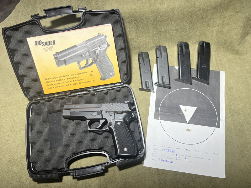 Moin, hier biete ich meine tadellos funktionierende P226 in 9x19 Luger zum Kauf an. Die Waffe ist präzise und in gutem Zustand. Dabei sind 4 Magazine, Koffer, originale Bedienungsanleitung und der Schießnachweis von SIG. Der Versand erfolgt nach Vorlage der EWB und Eingang des Kaufpreises. Dafür werde ich einen der üblichen Dienste beauftragen. Das müsste so ca. 40 Euro kosten. Die Waffe kann natürlich auch in Stade abgeholt werden.