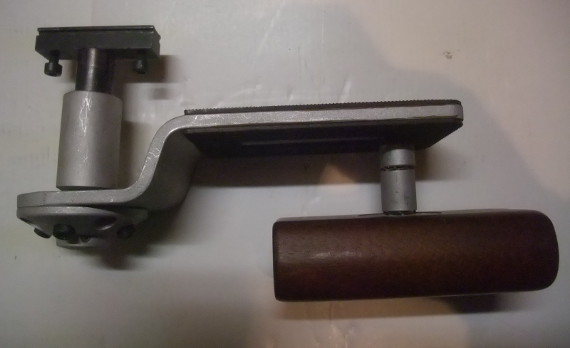 Diese 654 g schwere Handstütze ist aus einer Al-Legierung gefertigt und mittels Imbus- und Kreuzschlitzschrauben in Höhe und Seite verstellbar. Das Anschlussstück ist aus Stahl gefertigt und für eine 13 x 10 Aufnahmeschiene bestimmt, ist jedoch austauschbar. Der Griff ist aus dunkelbraunen, edlen Nussbaumholz gefertigt.