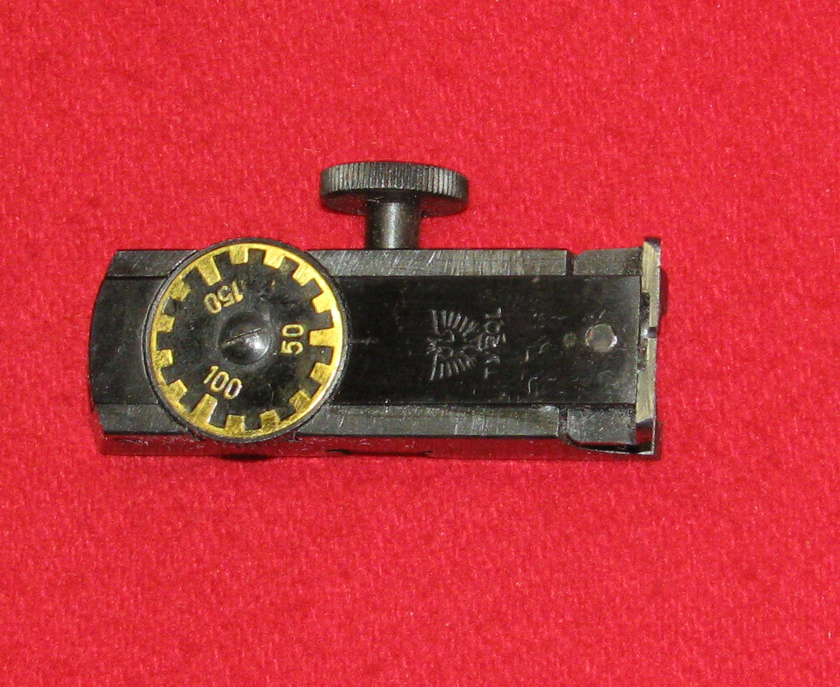 Zum Verkauf kommt, eine TYROL Stahl - Kimme mit 50 - 100 - 150 für eine 10mm Schiene