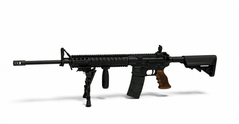 Premium DMR-Variante aus dem Baujahr 2010 mit exklusiver Ausstattung in Kaliber .223 Rem. Schwerer 20 Zoll langer Lauf mit Kompensator und CNC-gefrästen Picatinny Vorderschaft zur Anbringung taktischer Ausrüstung.