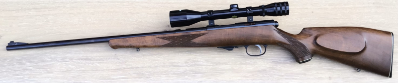 Es handelt sich um eine Repetierbüchse des Herstellers „Weihrauch“, „Modell HW 60J“ im Kaliber.22 Hornet.