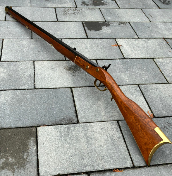 Zur Auktion kommt ein Vorderladergewehr von Dikar/Spain , Modell Kentucky im cal. 45 . Gesamtlänge 1240 mm . Der Schaft hat einen leichten Riss im Holz welcher aber ordentlich geleimt oder verklebt wurde . Ich habe zudem beim Ausschäften gesehen das die Laufhaltekeile verbogen sind und die Laufhaltebolzen fehlen . Lade-und Schussraste funktionieren . Piston , Lauf und Beschläge alles in Ordnung . Ich verkaufe das Gewehr aufgrund des Schaftes als defekt . Versand leider so teuer da es sich um Speergut handelt . Meiner Meinung nach kann man mit dem Gewehr noch Schießen aber das ist dem Käufer selber überlassen . Der Lauf hält vorne am Lauf durch den Messingabschluss durch 2 Schrauben . Rest siehe Bilder .