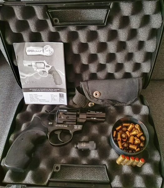 Revolver + BDA + Abschussbecher + Koffer + 30 x 9mmRK + 5 x 9mm Pfeffer Kartuschen.