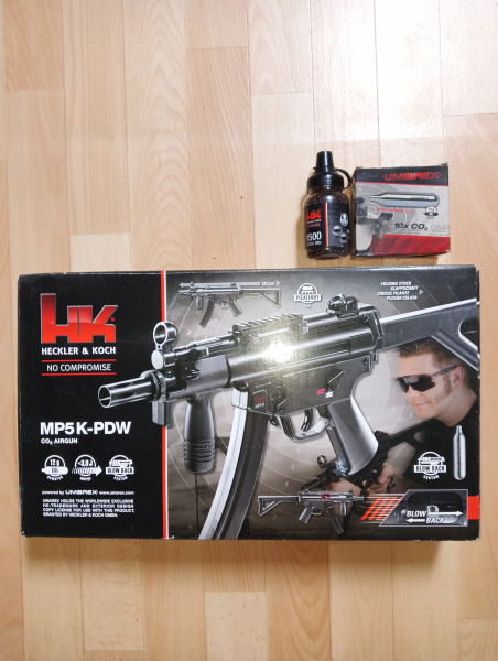 Biete aus meiner Sammlung diese Heckler & Koch MP5 K-PDW, CO² mit 4,5 mm BB Stahlkugeln und Blow-Back Funktion in absolut neuwertigem Zustand an. Lediglich ein einziges Mal zum Funktionstest geschossen, alles perfekt! Mit großem 40 Schuss Magazin und Picatinny Schiene zur Montage von Zieloptiken. Mit dazu gibt es 10 Stück Qualitäts CO2 Kapseln von Umarex, sowie eine Dose schwarze BBs von Heckler & Koch. Alles vollständig inklusive Originalkarton, Endstück für den Schaft, Bedienungsanleitung und kleinem Imbuss für die Picatinny Schiene. Wie immer ohne Garantie oder Rücknahme. Paypalzahlung (nur paypal an Freunde ohne Gebühren) oder Überweisung möglich.