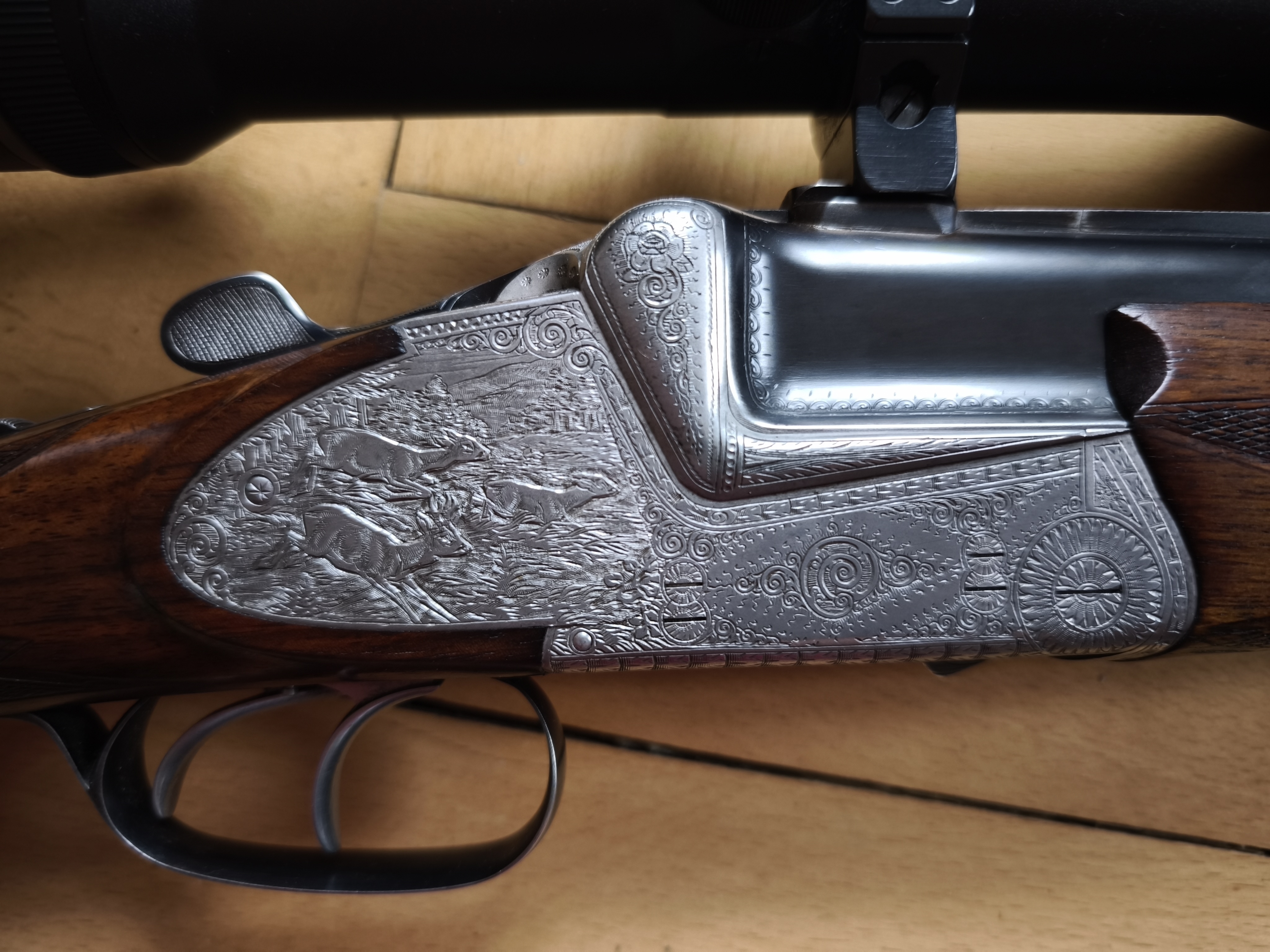 Zum Verkauf steht ein schöne Bockbüchsflinte aus Ferlach von Franz Sodia im Kaliber 7x57R, 16/70. Die BBF war 2023 zur Revision und befindet sich in einem einwandfreiem technischen Zustand. Auf einer Schwenkmontage ist ein Swarovski Habicht 1,5-6x42 montiert. Die Waffe wurde geführt und das Holz besitzt ein paar Gebrauchsspuren. Gesamtlänge der BBF beträgt 109cm. Von der Schaftkappe bis zum Okular 30,5cm. Von der Schaftkappe bis zum vorderen Abzug 38,5cm. Eine Besichtigung ist nach Absprache am Wochenende in 99423 möglich.