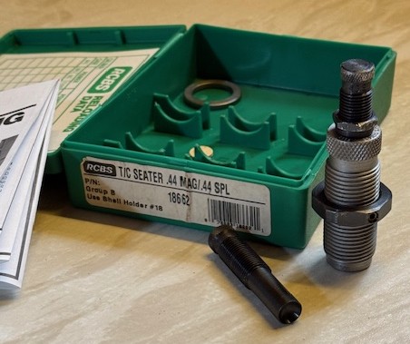 Der Setzstempel für Flachkopfgeschosse hat an der Einsellschraube ein paar Macken von einer Zange,