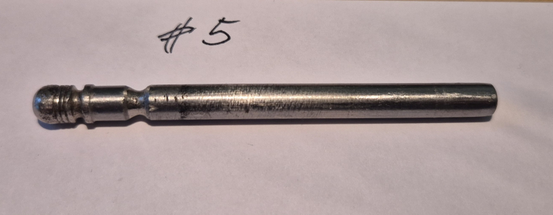 Original Colt SAA Ersatzteil #5, die vernickelte Trommelachse ist gebraucht und zeigt Werkzeugspuren am Kopf. Sie hat an beiden Enden kleine Löcher wie die Achsen der 1st Generation sie haben.
