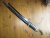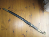 Schräg gerillter braunem Holzgriff, Lederscheide mit Messingbeschlägen, Gesamtlänge 102 cm, Klingenlänge 93 cm. Rest siehe Foto. EU versand 25 €