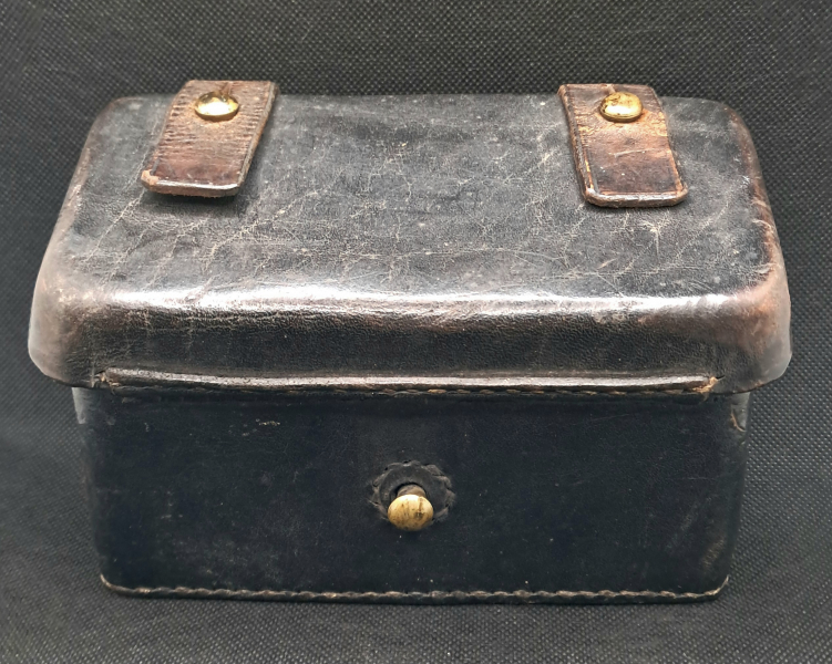 Gut erhaltene, seltene Munitionstasche zum dänischen Krag-Jørgensen aus dem 1. Weltkrieg. Die Patronen delaboriert, durch das Anzündhütchen aber ab 18.