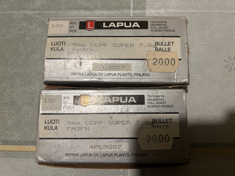 9mm Geschoße von Lapua 7,8 gr. Eine Schachtel verschlossen die andere offen. evtl. fehlen ein paar.