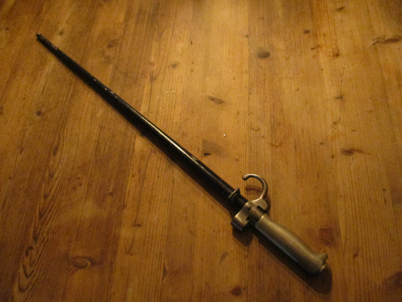 ich biete Ihnen hier ein französisches Lebel Bajonett im sehr guten Zustand an. Es ist die lange Version von 66cm. Die Scheide sitzt passgenau und hat lediglich 2 kleine Dellen welche kaum zu sehen sind. Drücker ist gängig. Absolut gerade. Kein Rost. Sammlerzustand. Achten Sie auch auf meine anderen Auktionen.