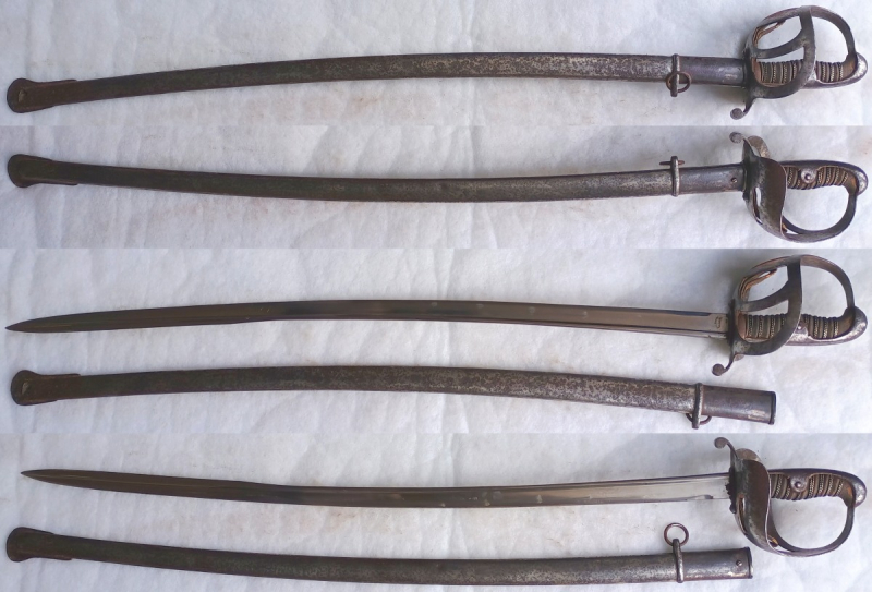 Stahlgefäß mit geschlossenem Griffrücken, Schörklinge, Hersteller Carl Eickhorn, Solingen, Abnahme W 05 sowie R. G. auf Korb und Scheide. Griff, Fingerschlaufe und Griffwicklung intakt. Scheide mit einem beweglichen Tragering recht rostfleckig mit Rostloch am Scheidenort. Gebrauchsspuren aber selteneres Wachtmeisterstück der Reichsgendarmerie.