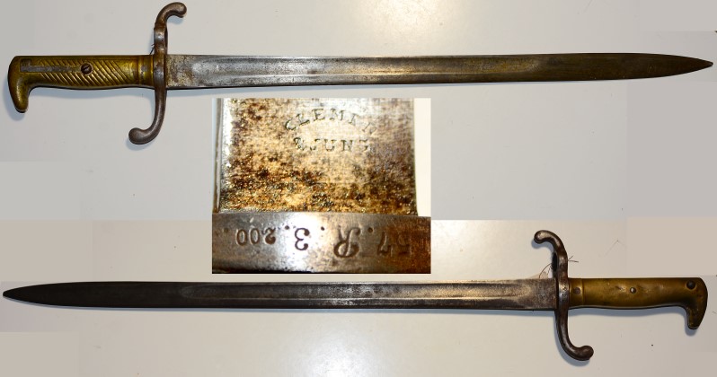 deutsches Seiengewehr Modell 1871, Klingenlänge 46,5 cm, Messinggriff, Hersteller "Clemen Jung", auf Klingenrücken "W75", gebrauchter Zustand und ohne Scheide