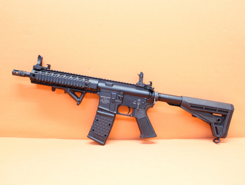 System AR-15, freischwingender 11" Lauf (Lothar Walther) phosphatiert Heavy Barrel, A2 Mündungsfeuerdämpfer (M14x1), Low-Profile-Gas-Block, A3 Upper Receiver, 9,25" Alu 4-Rail-System/ -Handschutz, OA Pistolengriff (gummiert), 6-Pos. OA Schubschaft, 10-Schuss Magazin mit Verlängerung (OA Active-Mag). Incl. Flip-Up BUIS Visierung/ Vorderschaftgriff. Gebrauchtwaffe. Maklergeschäft, Verkauf im Kundenauftrag! *Differenzbesteuerter Artikel nach §25a UStG*