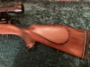 Die Büchse hat ein ansprechendes Nussbaum Kernholz mit guter Maserung. Vorderschaftabschluss und Kaisergriff sind aus edlem Ebenholz.
