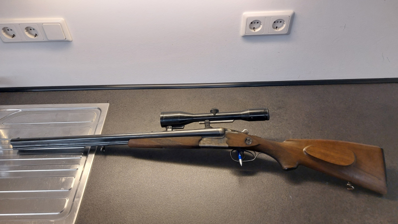Drilling Sauer und Sohn Fortuna im Kaliber 16/70 – 6,5x57 R. Mittels Suhler Einhakmontage ist ein Zeiss 6x42 mit Absehen 60 und Doppelter Absehens Verstellung montiert. Lauflänge 63 cm. Schaftlänge 36 cm. Zustand 3-4. Schaftkappe defekt. Schaft mit Schweinsrücken. Abholung möglich. Weitere Fotos folgen. Versandkosten werden nach Kauf genau ermittelt.