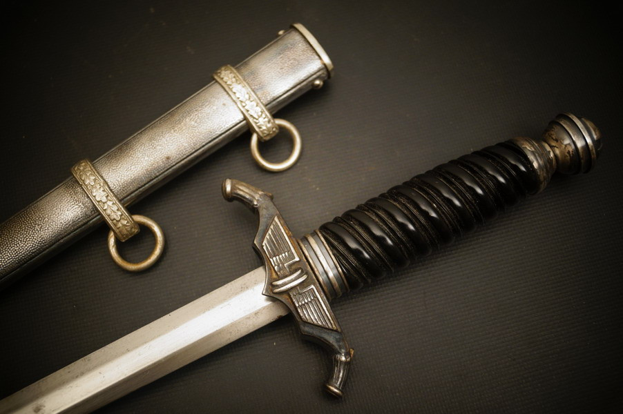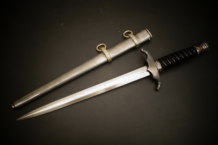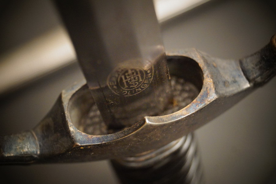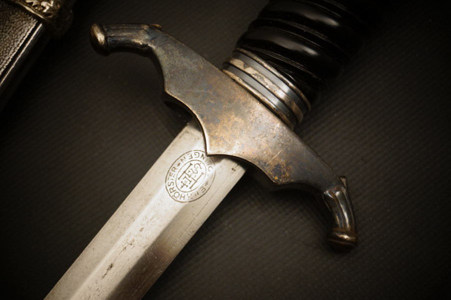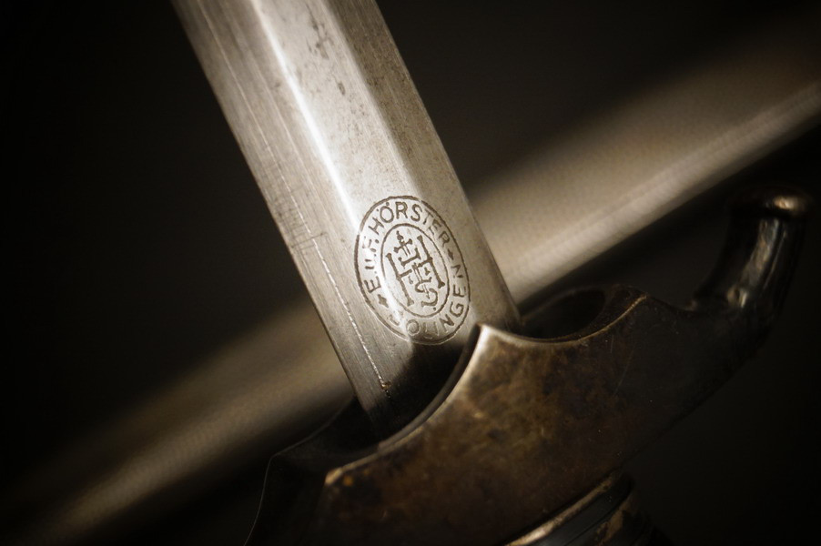 Fundzustand. Stahlklinge und Stahlscheide. Hersteller auf der Klinge Hörster Solingen.