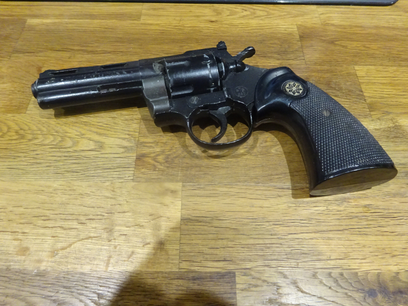 aus einem Nachlass: Revolver Umarex Python Kal. 380 Knall, deutliche Gebrauchsspuren, funktioniert tadellos, mit PTB Nr. frei ab 18 Jahren,siehe Fotos und mein egun
