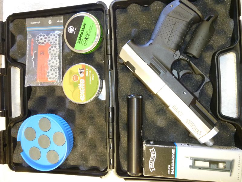 Walther CP99 Bicolor cal. 4,5 mm Diabolo mit Ersatzmagazin, Schalldämpfer etc. (SET)