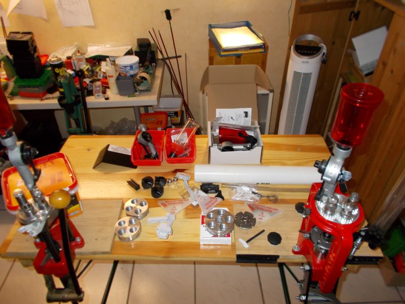 Lee 5 Stationenpresse und Lee 4 Stationenpresse komplett mit sämtlichem Zubehör und Tisch.