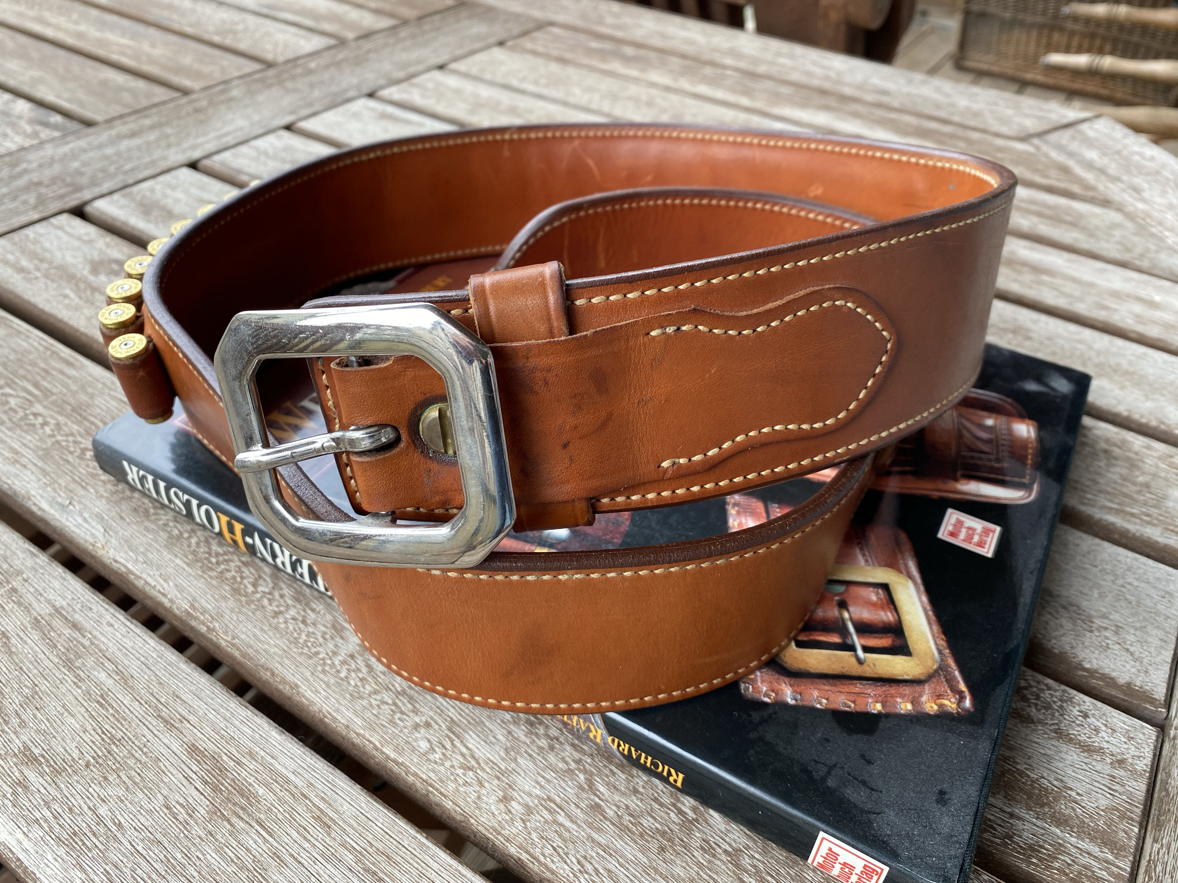 Gelegenheit - Bianchi B7 Patronengurt - aus der älteren Produktion - noch in Top Leder - und Verarbeitungsqualität! Patronenschlaufen für Kal .357/38 - Gürtelschnalle lässt sich tauschen! Gürtellänge insgesamt 126 cm - Lochabstände vom Dorn gemessen 109 cm bis 119 cm - dürfte bei einer Jeansgröße von W36 perfekt passen! Buch auf Bild 1 ist natürlich nicht mit dabei - nur der Gürtel! Privatauktion keine Garantie oder Rücknahme.
