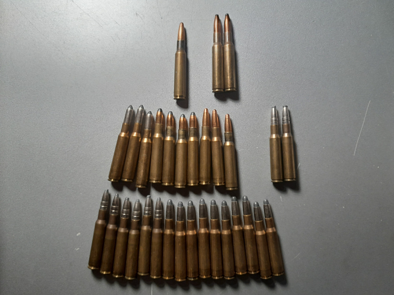 31 Lose Patronen 7x57. 2 x Bodenstempel Geco, 2 x Bodenstempel DWM, 1 x Bodenstempel S*B, 26 x Bodenstempel RWS