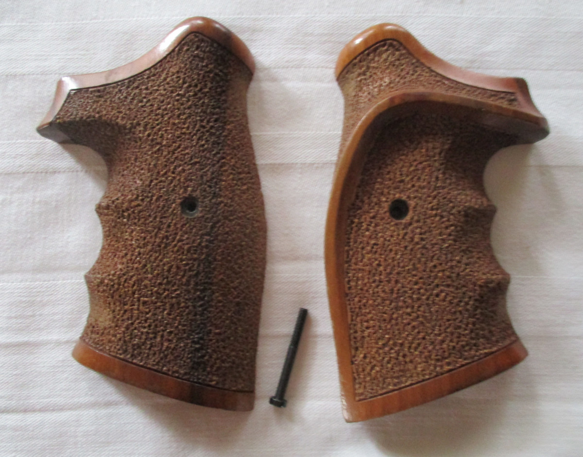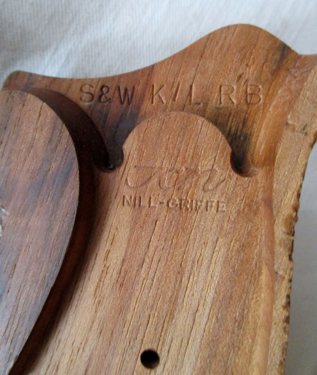 ORIGINAL hochwertige Karl Nill – Nussbaum – Holz - Griffschalen für Linksschützen, passend für Smith & Wesson K- und L-Rahmen (Round Butt). Die Griffschalen befinden sich in einem sehr guten Zustand. Typische Nill-Qualität: hervorragende Verarbeitung, edles Holz und optimale Ergonomie mit optimaler Anpassung für Linkshänder. Mit Schraube.