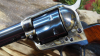 So ist zwar die Trommel eine extra für die Verwendung von Platzpatronen hergestellte Trommel, aber der Lauf ist der Originale - mit Feldern und Zügen - der allerdings zur Trommel hin gesperrt ist um einen scharfen Schuß auszuschließen. Die Mündung hat aber noch das Feld / Zugprofil und sieht so sehr realistisch aus.