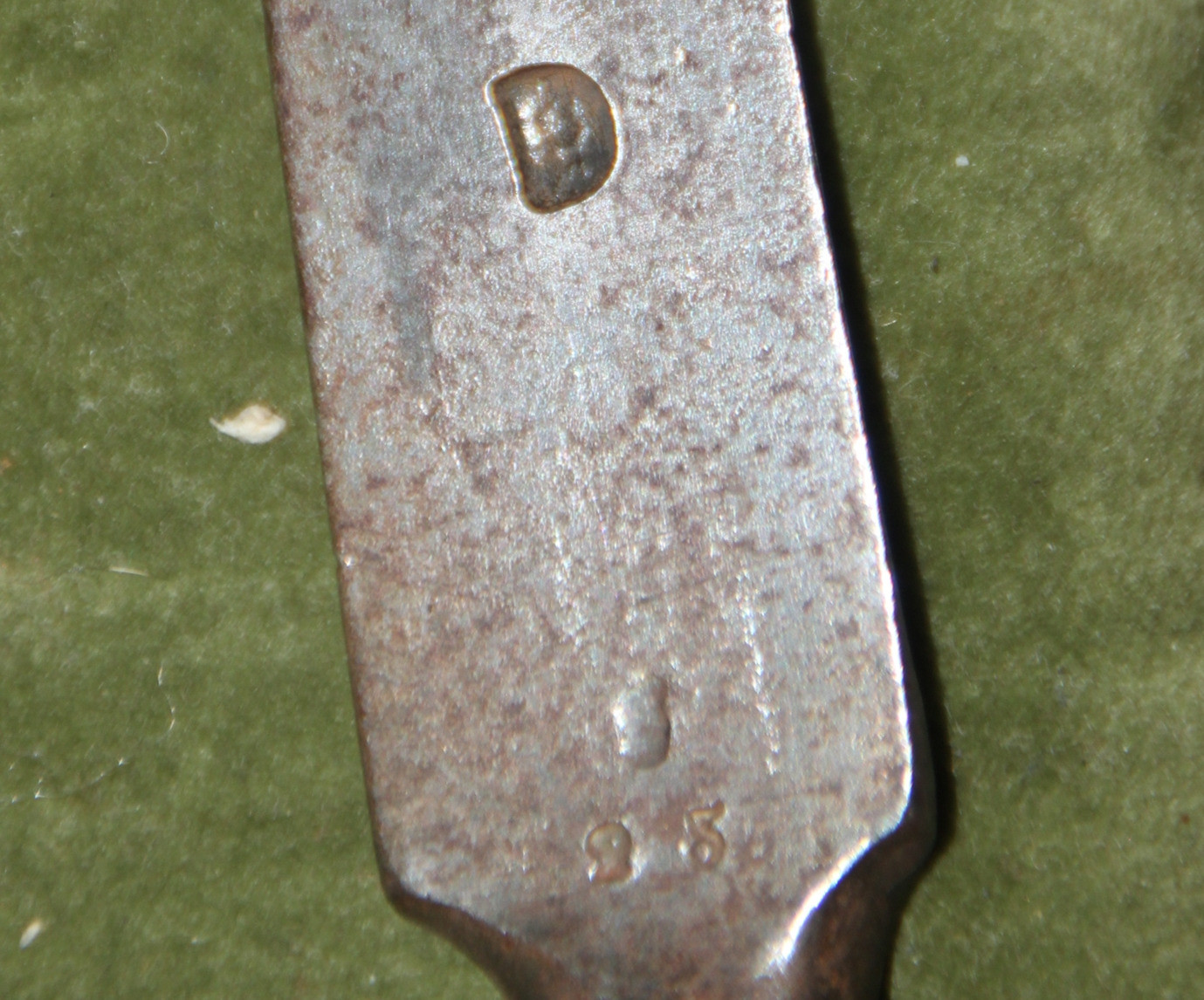Preußisches Dillenbajonett M 1809, wurde sowohl auf Gewehren M 1809 als auch M 1839 verwendet. Ohne Scheide. gedunkelt und fleckig, stellenweise feine Rostnärbchen. Keine weiteren Mängel. Am Ansatz der Klinge mehrere Kontrollpunzen und eine Nummer, auf dem Arm die Seriennummer. Siehe Fotos. Fotos sind Bestandteil der Beschreibung. Alle Angaben nach bestem Wissen und Gewissen. Dies ist ein Privatverkauf. Gemäß EU-Recht unter Ausschluss von Gewährleistung und jeglicher Sachmängelhaftung. Der Käufer ist selbst verantwortlich für die Einhaltung der gesetzlichen Vorschriften / des Waffenrechtes seines Landes. Fragen bitte rechtzeitig vor dem Auktionsende stellen. Ich beobachte meine Auktionen und mein Mail-Postfach nicht permanent. Daher bei kurz vor Auktionsende gestellten Fragen keine Garantie auf eine rechtzeitige Antwort. Verkauf nur gegen Vorkasse. Banküberweisung oder PayPal (Bei Zahlung über PayPal erhöht sich der Kaufpreis um die von PayPal einbehaltene Gebühr, bei Zahlung mit der Option Geld an Freunde senden entfallen diese zusätzlichen Kosten) Bei Selbstabholung ist Barzahlung möglich. Die Versandkostenpauschale deckt außer den reinen Portokosten auch einen Anteil an Verpackungs und Fahrtkosten zum nächstgelegenen Paketshop. Versandkosten sind nicht verhandelbar. Die Versandkosten sind Kosten für den Inlandsversand. Versandkosten ins Ausland gemäß den aktuellen Preislisten der beauftragten Paketdienste sind höher.