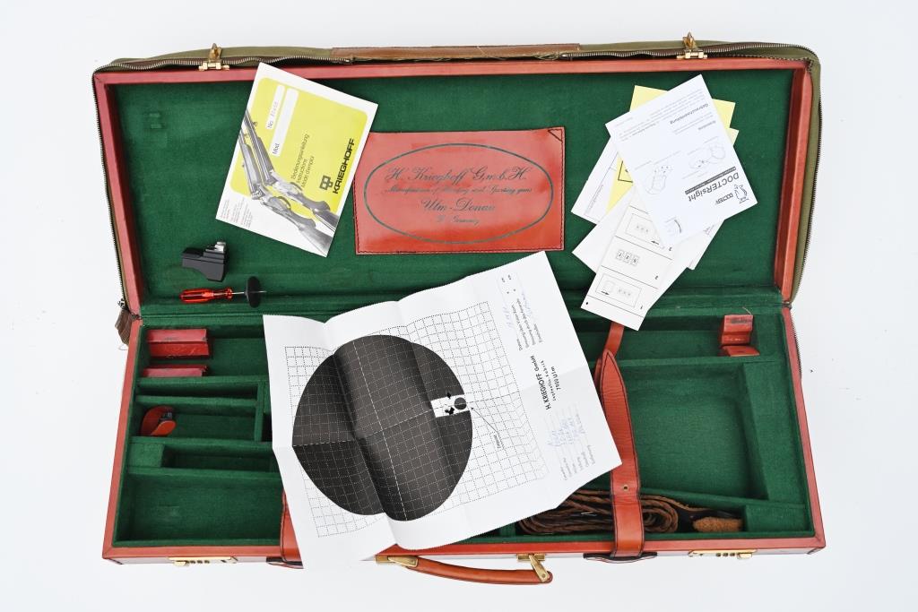 Geliefert in prima erhaltenem hochwertigem KRIEGHOFF-Lederkoffer, mit 2 Zahlenschlössern, der Koffer ist wiederum schonend ummantelt mit einer Stofftasche mit umlaufendem Reissverschluss.