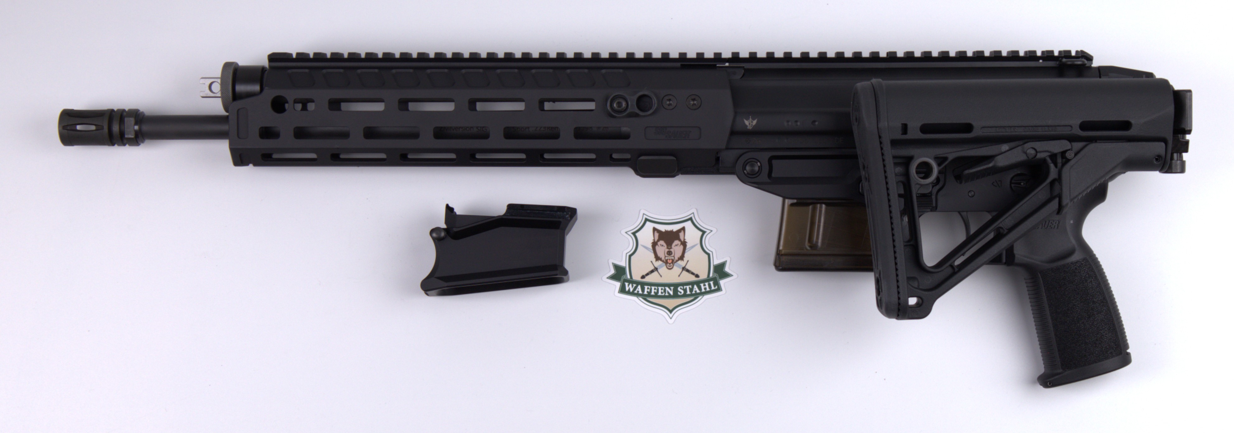 Mit dem 14,5″ Lauf bietet die SG561 eine ausgewogene Kombination aus Führigkeit und Präzision. Das bewährte Long-Stroke-Piston-Gasdrucksystem mit mitlaufendem Ladehebel bleibt vollständig erhalten und ist in mehreren Stufen einstellbar, bekannt für hohe Funktionssicherheit auch bei wechselnder Munition.