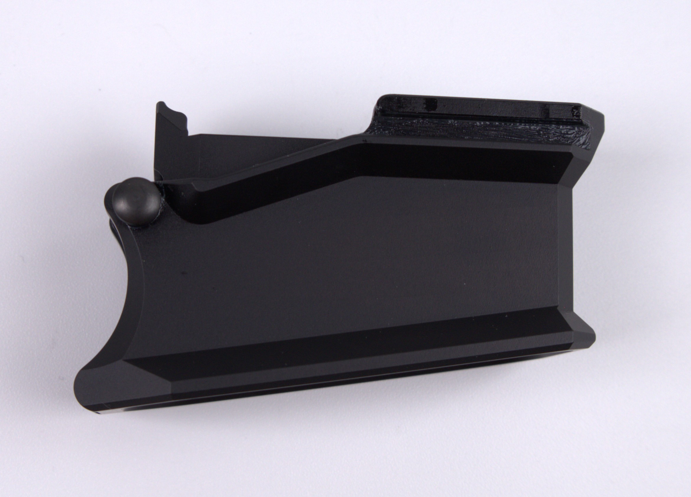 Ergonomischer Magazinlösehebel und beidseitiger Verschlussfang im AR-15 Layout.