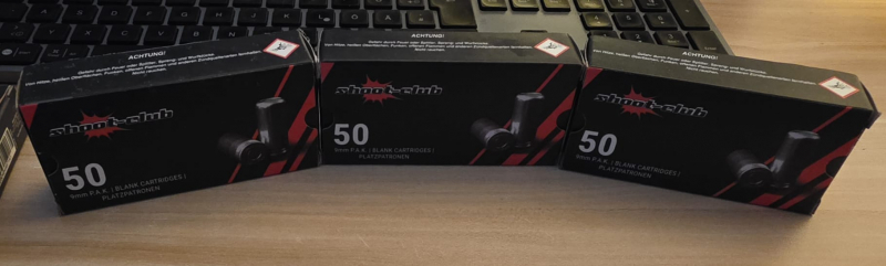 ich biete euch hier 3 Pakete shoot-club Platzpatronen 9mm P.A.K - 50 Stück (Insgesamt 150 Stück),