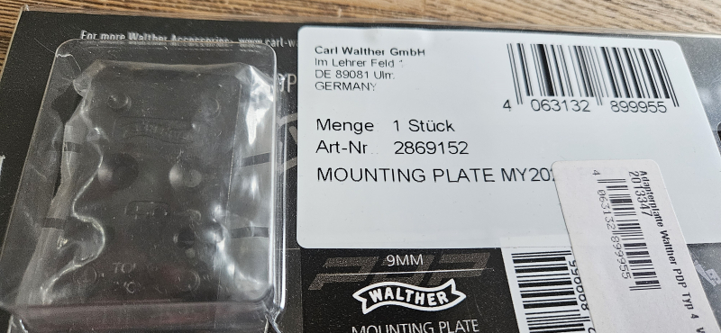 Verkaufe hier im Auftrag eine Adapterplatte Typ 04 für die Aufnahme eines Red Dot Visier passend für die Walther PDP V2.