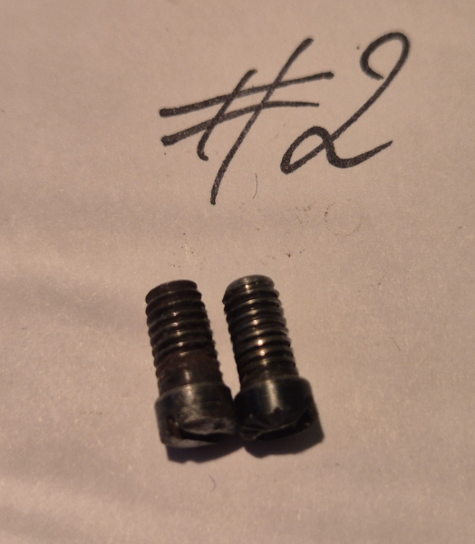 Original Colt SAA Ersatzteil #2 brünierte Schrauben mit Gebrauchsspuren für den Griffrahmen, es werden 2 Schrauben geliefert